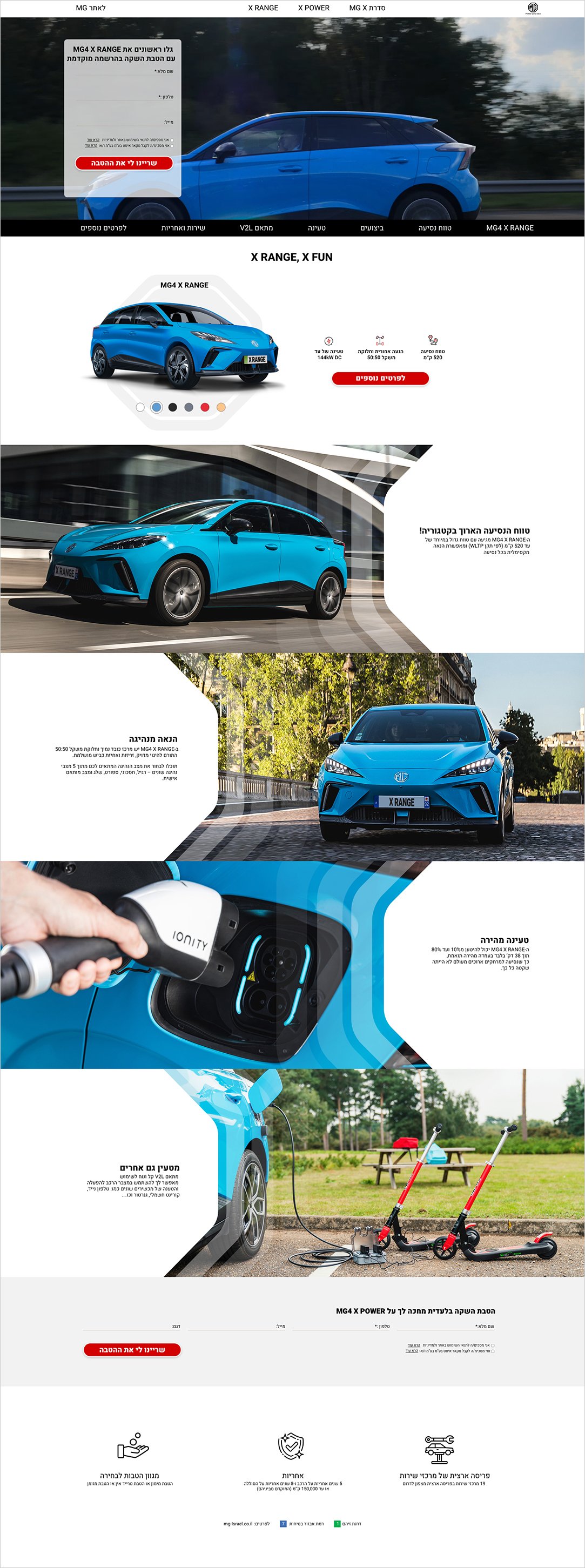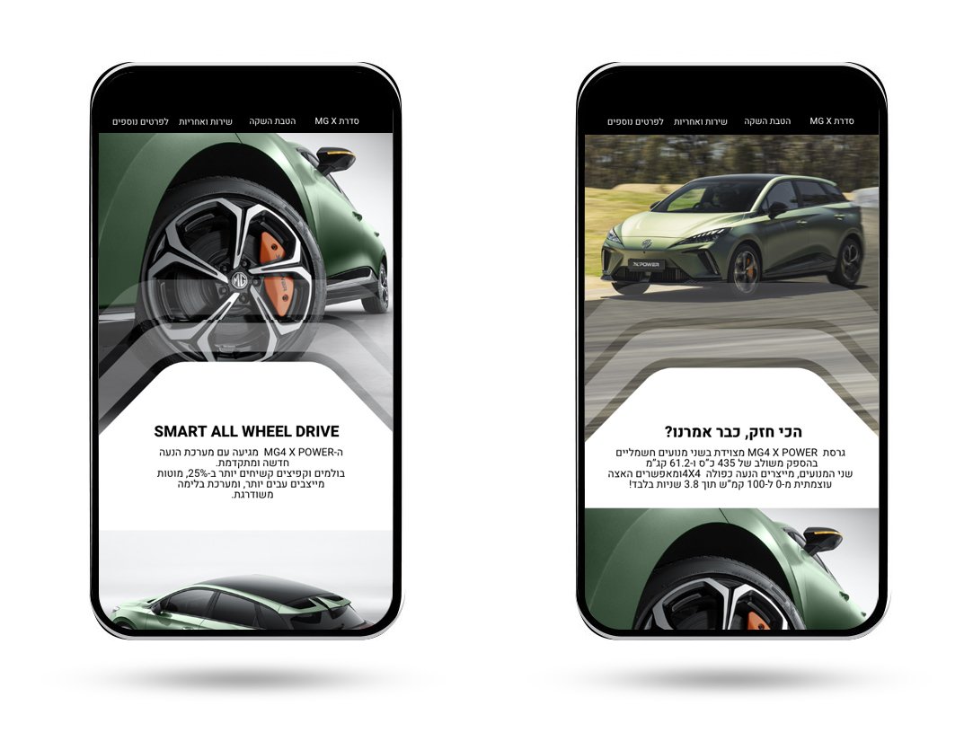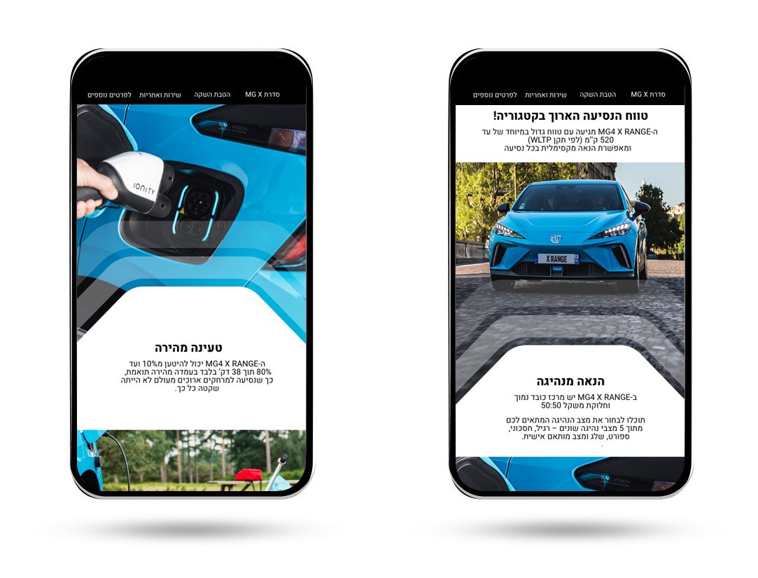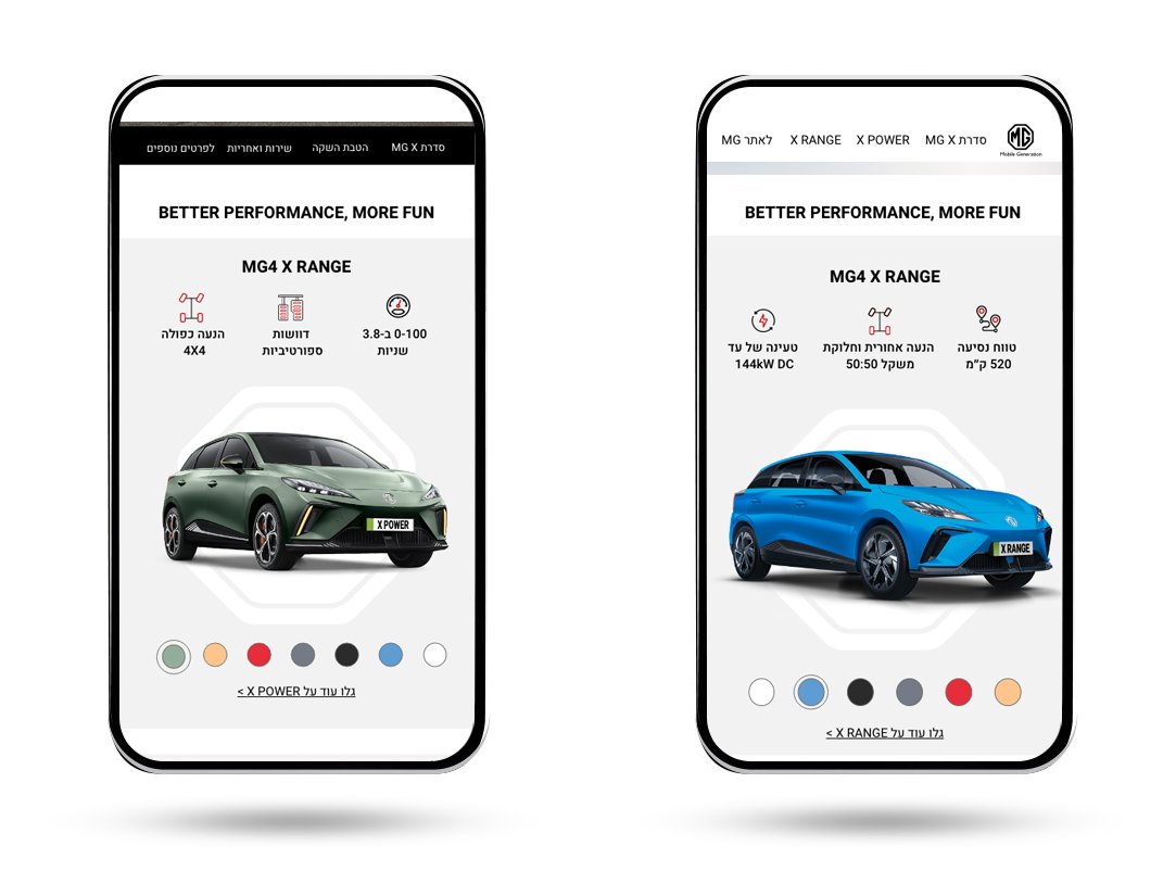 במהלך פיתוח עמודי הנחיתה לדגמי MG4 X RANGE ו-MG4 X POWER, תהליך ה-UI/UX עמד במרכז. ראשית, הוגדרו מטרות עמודי הנחיתה בהתאם ליתרונות כל דגם: MG4 X RANGE הצטיין בטווח נסיעה ארוך, ו-MG4 X POWER בתגובה מהירה וביצועים חזקים.